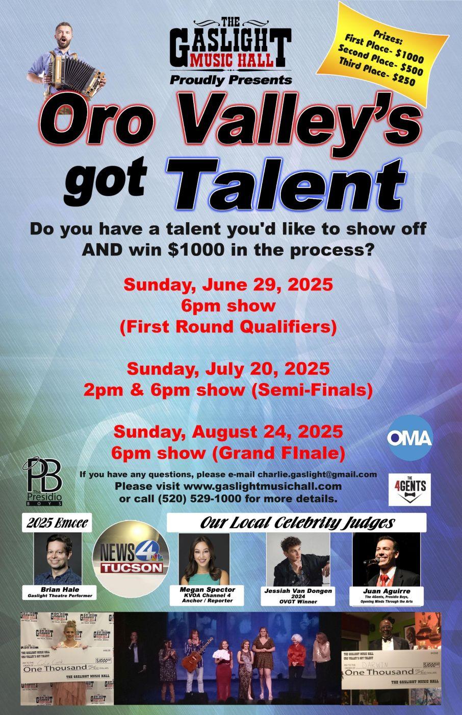 Subject: ORO VALLEY'S GOT TALENT! First Round Qualifier Concerts - 6/29 @ 2PM & 6 PM