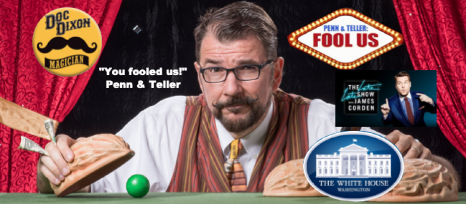 For more than 25 years, Doc Dixon has performed for comedy clubs, resorts and corporate events across the country. His corporate clients include Walmart, American Express, and Westinghouse. He has fooled Penn & Teller on the hit TV show Penn & Teller: Fool Us. He has performed on The Late Late Show with James Corden and has twice entertained at The White House. When not traveling the world performing, Doc lives near Atlanta GA with his wonderful wife Bethany, six sons, three dogs, four rabbits, seven chickens, and a very confused cat.